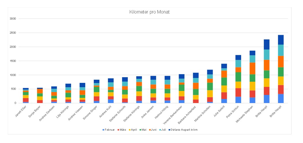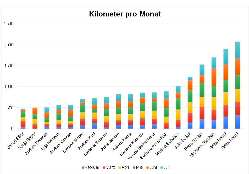 Die Kilometer und die bei den Monatsaufgaben erzielten Punkte werden im Laufe des Jahres addiert.