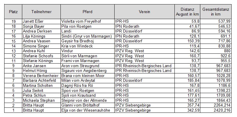Zwischenergebnis August der Rheinland-Challenge 2025